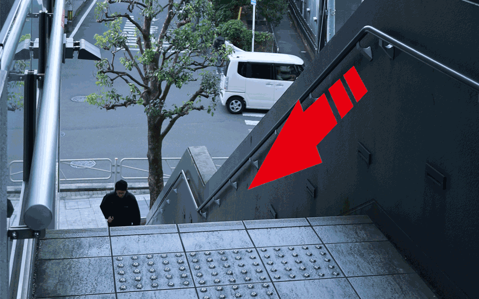 突き当たりにある階段をおります。