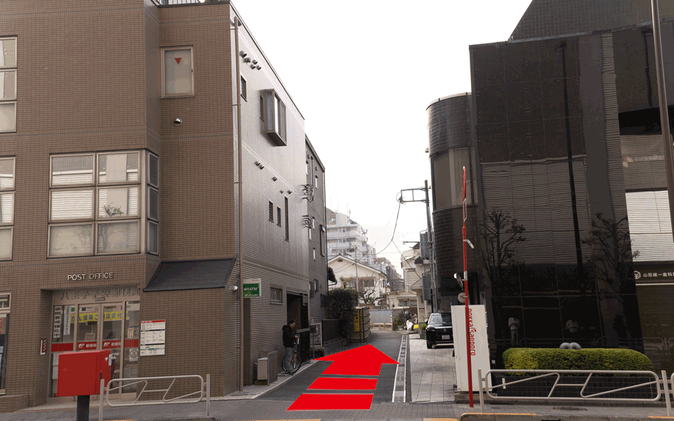 郵便局の手前を右に曲がり、奥に進みます。